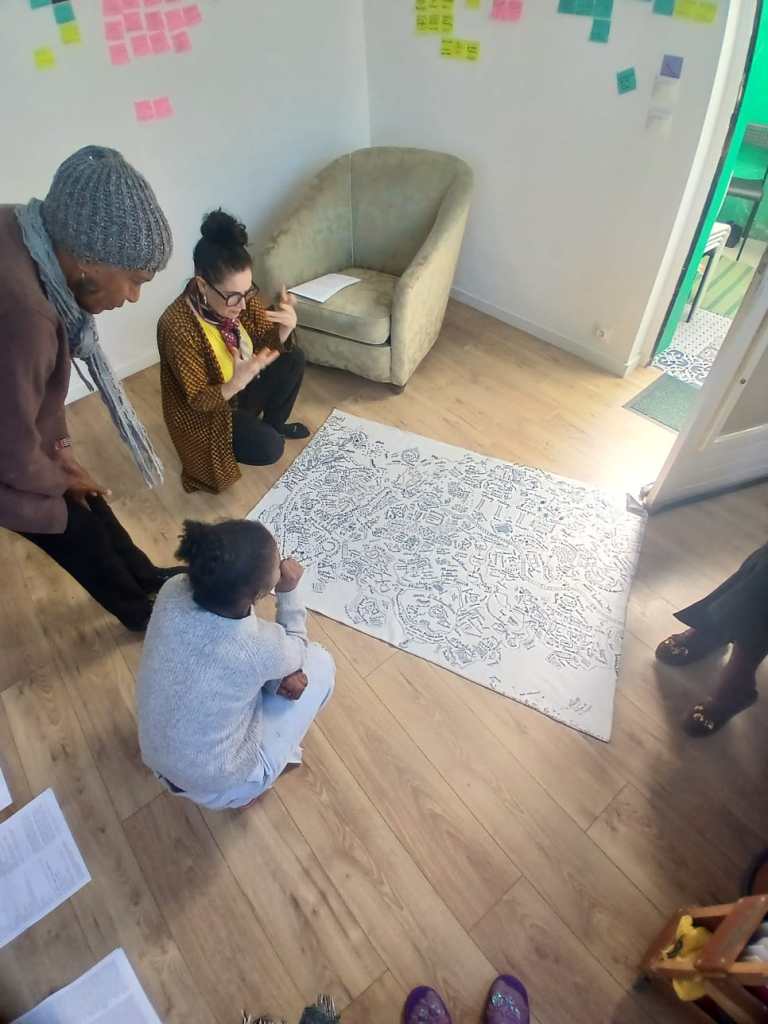 les enfants qui reviennent chaque semaine, les mamans qui arrivent par petites touches, les seniors dont la présence dépend de la santé, des déplacements, des jours. Les disponibilités changeantes, les rencontres dans les halls, les circulations dans les squares ont constitué le terrain de la création.